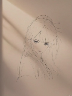 solo,highly detailed,(best quality),((masterpiece)),shouhui, 1girl, solo, hair ornament, upper body, long hair,looking at viewer,lu,large breasts, hair ornament, bangs, hair stick,monochrome,