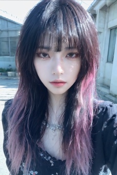 best quality, masterpiece, ultra high res, (photorealistic), 8K, raw photo, natural skin texture, natural skin texture, top model, fashion model, standing, solo, detail face, bangs, polaroid, film grain, makeup, blush, jewelry, solo, 1girl, earrings, jewelry, jiFilm, jastyle, Film Photography, pld, motion blur ,35mm photograph, film, bokeh, professional, 4k, highly detailed,blood,sunshine,day,upperbody,streaked hair,light,blue hair, ll-hd,pink hair,caustics fireworks horizon lips looking at viewer reflection solo expressionless ,floral print,