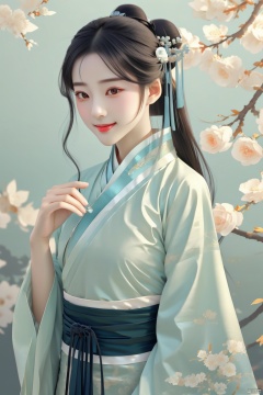 glasscandypaper,1girl,smile,hanfu,chinese costume,upper body,(best quality),((masterpiece)),(an extremely delicate and beautiful),original,extremely detailed wallpaper,