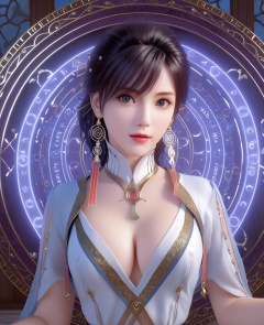<lora:639-DA-XL-眷思量-须灵犀:0.8>(,1girl, ,best quality, ),looking at viewer,ultra detailed background,ultra detailed background,ultra realistic 8k cg, ,masterpiece, (( , )),   (magic, magic circle, ),  (cleavage), (),