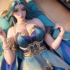 <lora:642-DA-完美世界-龙女:0.8>(,1girl, ,best quality, ),looking at viewer,masterpiece, ((((1girl, solo , lying, )))) (cleavage), (), ,ultra realistic 8k cg,   clean, masterpiece,      (( , )),,  , unreal, science fiction, luxury, jewelry, diamond, gold, pearl, gem, sapphire, ruby, emerald, intricate detail, delicate pattern, charming, alluring, seductive, erotic, enchanting, hair ornament, necklace, earrings, bracelet, armlet,halo,(cleavage),, (),