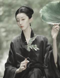 1girl,hanfu,woman,(masterpiece, best quality:1.2, ),a woman in a black dress holding a large leaf,jingna zhang,by Zhang Shuqi,eiko ishioka,by Lin Tinggui,by Kim Tschang Yeul,donglu yu,wei wang,inspired by Lin Tinggui,wenfei ye,by Zou Yigui,by Wu Zuoren,by Wang Duo,chengyou liu,<lora:Orient_XL:1>,