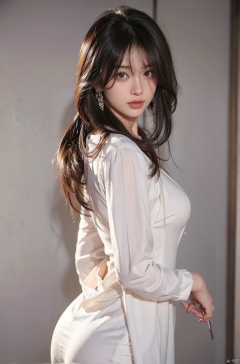 1girl, black hair, long hair, dress, solo, white dress, hair ornament, chinese clothes, facial mark, hair bun, forehead mark, earrings, perfect body, scenery, sharp focus, best quality, masterpiece, detailed outfit, illustration, perfect eyes, finely detailed beautiful anime eyes, realistic skin, intricate details, best lighting, depth of field, ultra high resolution,cowboy_shot, dynamic pose, dynamic angle,