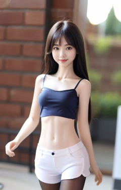 1girl,cowboy_shot,(Good structure),DSLR Quality,Depth of field,looking_at_viewer,Dynamic pose,kind smile,(best qualtiy,8K,tmasterpiece:1.3),(sharp fokus:1.2),(one-girl:1.2),(perfect body figure:1.4),(Slim abs:1.1),(camisole:1.4),exteriors,rays of sunshine,Fine face,beautidful eyes,Straight legs,1girl,shorts,long_hair,pantyhose,wangyushan,<lora:xingganchengshuxuejie:0.8>,