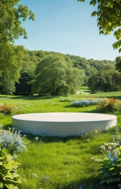 zhantai,countertop,outdoor,dream scene,poster background,light blue sky,high definition,normal contrast,high-end color,plants  surround the stand,in a meadow,green plant,flowers,<lora:dianshangzhantai:0.7>,