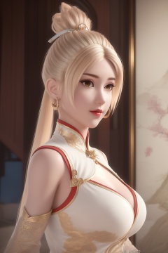 (8k, RAW photo, best_quality),(masterpiece:1.2),(realistic:1.2),(photorealistic:1.3),(ultra-detailed),(extremely_detailed_cg_8k_wallpaper),(crystal_texture_skin:1.3),(shiny:1.2),(shiny_skin:1.4),(extremely_delicate_and_beautiful),petals,flower,sky,cherry blossoms,falling petals,fair skin,shenfengXiaoNingEr,1girl,solo,dress,chinese clothes,clothing cutout,torogao,breasts,large breasts,lipstick,blonde hair,standing,jewelry,hair ornament,earring,necklace,realistic,looking at viewer,<lora:shenfengXiaoNingEr_20240716085820-000004:0.7>,