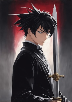 A deadly anime-style portrait of Tanjiro Kamado from "Demon Slayer". Highlight his intense gaze, sharp blade, distinctive hairstyle, and attire. Set a dark and mysterious background to emphasize his combat prowess and charismatic appeal., ., ., .