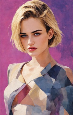 Kristen Stewart,a young beautiful girl,20yo , ., ., A sophisticated fashion model girl,short blonde hair,dynamic character,20yo,detailed exquisite face,parody,complex background,dynamic light and shadow,bold high quality,high contrast, patchwork,Upperbody,vibrant colors,looking at viewer,by Gustav Klimt$ and [[karol bak$]]