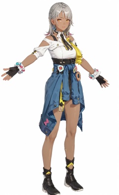 ASCII score_9, score_8_up, score_7_up, 8k, best quality, masterpiece, (ultra-detailed), (high detailed skin), (white background:1.6), (full body:1.2), (white background), standing, looking at viewer, (solo:1.2), hands on hips, <lora:Carol-pony-Tanger-000014:0.8>, Carol, def clothes, 1girl, gloves, fingerless gloves, dark-skinned female, dark skin, black gloves, clothes around waist, yellow eyes, black footwear, grey hair, (beautiful_face), ((intricate_detail)), clear face, ((finely_detailed)), fine_fabric_emphasis, ((glossy)), full_shot,