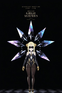 1girl, full body, best quality, high detail, <lora:qianren-artiwaifu-Tanger:0.7>, qianren, qianren's def clothes, 1girl, blindfold, blonde hair, pantyhose, joints, black shoes, Confident, stunning figure, head high, eyes sparkling, magnetic presence, commanding attention, self-assured, charismatic, captivating., dynamic pose, extreme aesthetics, art photography, film lens, film light and shadow, simple_black_background, black and white theme, Sense of coordination, sense of order, mathematics beauty, (cover design), (cover art), ((trim)), album_art, official art, (Master's work), chessboard, chess, white geometry, black geometry, reflection, crystal_art, pattern_design, creative, Mystery pattern, black crystal decorate, black crystal, (architectural art), ((geometric art)), pattern design, creative, ------, Low saturation, grand masterpiece, Perfect composition, film light, light art,