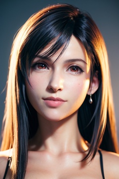 tifa, 1girl, solo, looking at viewer, portrait, grey background, collarbone, smile, closed mouth, front view,Best quality,masterpiece,ultra high res,<lora:tifa3rface-000005:0.7>,