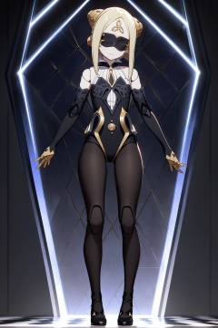 1girl, full body, best quality, high detail, <lora:qianren-A3-Tanger-000010:0.7>, qianren, qianren's def clothes, 1girl, blindfold, blonde hair, pantyhose, joints, black shoes, Confident, stunning figure, head high, eyes sparkling, magnetic presence, commanding attention, self-assured, charismatic, captivating., dynamic pose, extreme aesthetics, art photography, film lens, film light and shadow, simple_black_background, black and white theme, Sense of coordination, sense of order, mathematics beauty, (cover design), (cover art), ((trim)), album_art, official art, (Master's work), chessboard, chess, white geometry, black geometry, reflection, crystal_art, pattern_design, creative, Mystery pattern, black crystal decorate, black crystal, (architectural art), ((geometric art)), pattern design, creative, ------, Low saturation, grand masterpiece, Perfect composition, film light, light art,