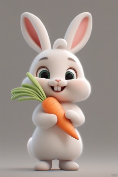 3D style,一只可爱的小白兔,鬼鬼祟祟的,手里拿着一个胡萝卜,