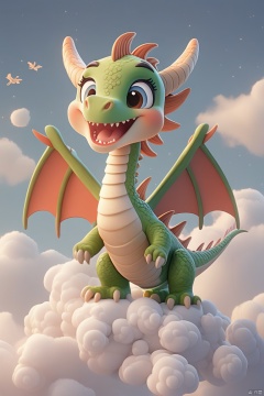3D style,一条可爱的西方巨龙,巨大的翅膀,腾云驾雾