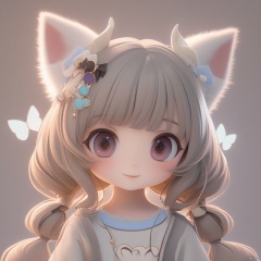 3D style,chibi,一个可爱的萝莉,兽耳娘,特写