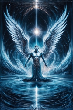 Hypnotic waves of consciousness pulse through a mystical and mysterious planet, guided by a godlike figure exuding an aura of hypnosis. This mesmerizing scene captures the essence of otherworldly power and intrigue. An intricate painting showcases a vast, swirling universe filled with ethereal shapes and colors, each detail imbued with a sense of enchantment. The hypnotic deity, with its piercing gaze and transcendent presence, is the focal point of this captivating image, drawing viewers into a realm of hypnotic man,FuturEvoLabStyle,FuturEvoLabBoy,FuturEvoLabWings