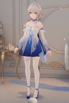 2d,动漫风格,插画,二次元人物,立绘,空白背景,全身画像sanyueqi, 2nd clothes, blue princess short dress, 1girl, blue eyes, bangs, bare shoulders, dress, white thighhighs,