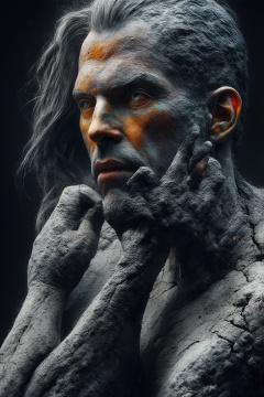 portrait of a ultrarealistic human man. 8k resolution, 4k image. HDR highly detailed. vivid. UHD, amazing depth, glowing rich colors, powerful imagery, incinerated ash arm, macro textured black ash arm, deep fine cracks, kintsugi, soft focus, half body editorial shot, depth of field, intricately hyperdetailed, amazing depth, expansive details, cracked surface, iridescent surface, Anna Dittmann, Dominic Qwek, complex masterwork by head of prompt engineering, ap0l0n1artSHC