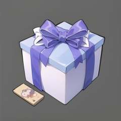 (masterpiece, top quality, best quality, official art, beautiful and aesthetic:1.2),(8k, best quality, masterpiece:1.2),((( Grey Background, solid color background))) <lora:GMIC icon_2dv1.0:0.85>,game icon institute_\(icon\), a blue gift box with a purple bow and a card inside it with a picture of a baby on it, blue bow, bow, box, brown hair, grey background, in container, long hair, open mouth, simple background, moroboshi kirari