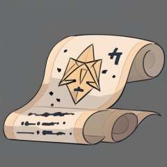 <lora:gmic ico_2d1.2-000012:0.5>,game icon  institute_\(icon\),a drawing of a roll of paper with a pentagramil on it and a pentagramil on top,grey background,no humans,simple background,