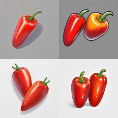 gmic_\(2dguofeng\), two red peppers on a white background with a shadow of the pepper on the bottom of the picture and the top of the pepper on the bottom of the picture, blurry, depth of field, food, white background, simple background