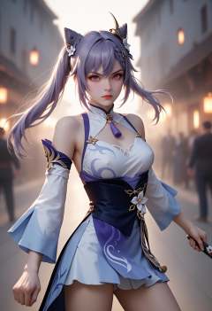 cinematic film still,score_9,score_8_up,score_7_up,dramatic lighting,highly detailed,high budget,bokeh,cinemascope,moody,epic,gorgeous,film grain,grainy,masterpiece,best quality,perfect anatomy,very aesthetic,official art,8k,1girl,keqing \(genshin impact\),fighting_stance,fighting_stance,beautiful clothes,angry expression,