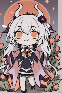 (solo:1.7),1girl\((devil:1.7),cute,big eyes,white skin,pale skin,evil smile,long nail,orange eyes,(looking down:1.3),wearing capelet\((very big:1.5),(very long:1.3),(black),Tattered\)\), BREAK ,refreshing mood,(petals\(colorful,beautiful,in the air,(many)\):1.5),(dead trees), in the forest,(close-up of girl),beautiful moon
