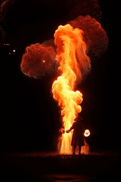 (masterpiece),(best quality),ultra detailed,hdr,1boy,HUOHU art,fire,Black background,at night,