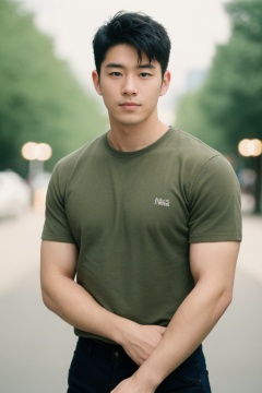 cinematic photo 1boy,handsome_wataru,male,handsome,asian,short hair,<lora:Asian_man_face:0.7>,short_sleeves . 35mm photograph, film, bokeh, professional, 4k, highly detailed
