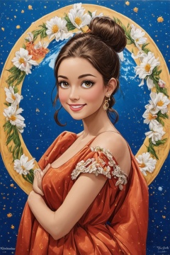 (1girl, from Africa, smile, face focus, bun hair, perfect face, medium shot, gracefully, flowers and her country national flag form intricate patterns against the backdrop of the Earth, reminiscent of the styles of Da Vinci), Detailed texture, High quality, High resolution, High precision, Realism, Color correction, Proper lighting settings, Harmonious composition, Behance Works,detail-rendering,Realistic Enhance,,Fashion drawing