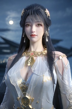 (Masterpiece:1.2), best quality,1girl, looking_at_viewer,(big breasts:1.5),Xyaoye,Large aperture, blurred background, spring scene,flowers,Xsimiaoling,(Peony,full moon:1.23),Xbaiyuerong