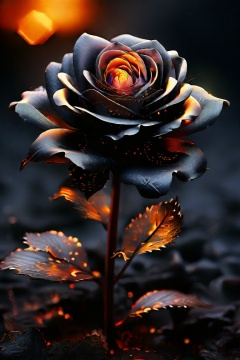 cinematic photo breathtaking hyperrealistic art A digital illustration combining elements of two images: a scene of black, charred roses with faetastic Glowing  embers amidst a dark, ash-covered ral-oilspill ground, and an shiny intricate  fractal design resembling a ral-polishedsteel golden flower with complex patterns and details. The composition blends the dark, burnt elements with the bright, glossy elegant fractal flower, creating a dramatic and surreal visual effect with high contrast and day-glo details. Extremely high-resolution details, photographic, realism pushed to extreme, fine texture, incredibly lifelike . award-winning, professional, highly detailed . 35mm photograph, film, bokeh, professional, 4k, highly detailed