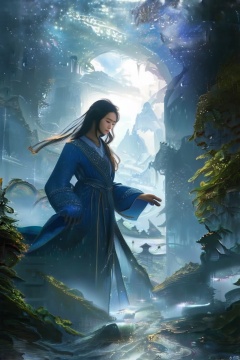 Chinese mythology, 1girl, atmosphere is charged with an otherworldly energy, fantasy realism, dramatic lighting, detailed textures to bring the scene to life, digital artwork, 8k image quality, matte painting, highly detailed,