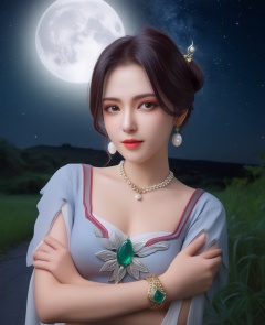<lora:703-DA-XL-少年歌行-墨花雪:0.8>(,1girl, ,best quality, ),looking at viewer,masterpiece(,1girl,night, starry sky, milky way,outdoors, full moon,  night sky, darkness,  world of darkness, , ) ,ultra realistic 8k cg,   clean, masterpiece,     (( , )),, , , prestige, luxury, jewelry, diamond, gold, pearl, gem, sapphire, ruby, emerald, intricate detail, delicate pattern, charming, alluring, seductive, erotic, enchanting, hair ornament, necklace, earrings, bracelet, armlet,halo((, )), (),