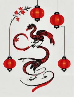 DonM0n3L1n3 one line drawing, lunar newyear, Gongbi, Detailed brushwork often depicting birds and flowers, Bustling, Paper cuttings, Intricate designs representing luck and happiness, chinese Dragon, Symbol of power and good luck, Cityscapes, Illuminated by festive lights, lanterns, and decorations, with crowded streets and markets, Wearing new clothes, Electric red lanterns, Modern take on traditional lanterns, often with flashing lights or music <lora:DonM0n3L1n3:0.8>