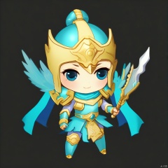 The Q version of the smart general is a slender woman wearing a small golden helmet decorated with playful tassels. Her face is large and round, her eyes are sparkling and her expression is sweet and full of vitality. Wearing light armor, cyan is the main color, and the edges of the armor are decorated with simplified patterns. He holds a small scimitar in his right hand and a small staff in his left hand. Her boots are simple in design, but her steps are light, making her look agile and cute