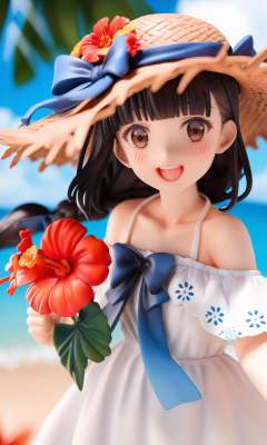score_9,score_8_up,score_7_up,score_6_up,score_5_up,score_4_up,source_anime,1girl,hat,outdoors,solo,black hair,camera,flower,smile,braid,open mouth,dress,beach,day,brown eyes,holding,looking at viewer,sky,cloud,white dress,holding camera,blush,upper body,long hair,hibiscus,:d,red flower,ocean,blunt bangs,bow,straw hat,hair bow,blue sky,bare shoulders,sun hat,collarbone,brown headwear,teeth,hat flower,single braid,blue bow,