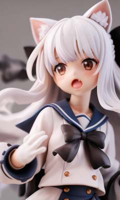 score_9,score_8_up,score_7_up,score_6_up,source_anime,1girl,sensitive,long hair,blush,open mouth,gloves,bow,animal ears,brown eyes,white hair,hair bow,fang,cat ears,sailor collar,black bow,shallow depth of field,highly detailed,high budget,cinemascope,epic,color graded cinematic,atmospheric lighting,imperfections,natural,shallow dof,