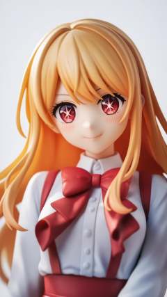 (score_9,score_8_up,score_7_up),source_anime,1girl,solo,upper_body,blush,smile,blonde_hair,long_hair,closed_mouth,commentary,hoshino_ruby,long_sleeves,red_bowtie,red_eyes,simple_background,star-shaped_pupils,white_background,<lora:oshi_no_ko:1>,
