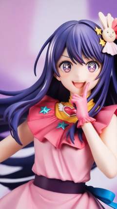 (score_9,score_8_up,score_7_up),source_anime,1girl,hoshino_ai_\(oshi_no_ko\),solo,upper_body,blush,smile,long_hair,purple_hair,rabbit_hair_ornament,absurdres,highres,battery_indicator,commentary_request,finger_frame,hair_between_eyes,idol_clothes,looking_at_viewer,open_mouth,pink_dress,pink_gloves,purple_eyes,star-shaped_pupils,star_in_eye,<lora:oshi_no_ko:1>,