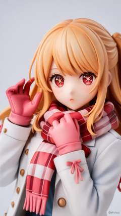 (score_9,score_8_up,score_7_up),source_anime,1girl,solo,upper_body,hands_up,blush,eyelashes,blonde_hair,absurdres,highres,:o,breath,cold,commentary_request,doodle_inset,hoshino_ruby,long_bangs,looking_at_viewer,one_side_up,parted_lips,pink_mittens,pink_scarf,plaid_scarf,red_eyes,signature,simple_background,snowman,star-shaped_pupils,swept_bangs,white_background,white_coat,<lora:oshi_no_ko:1>,