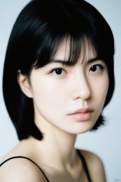liangyi, 这是一张女性的肖像照片。她有着黑色的短发,头发自然地垂在肩膀上。她的眼睛看起来很深邃,眼神平静而神秘。她的皮肤白皙,