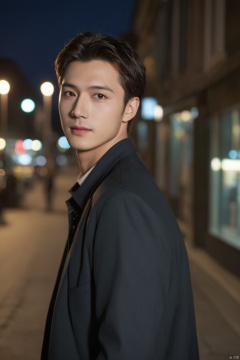 ((masterpiece)),((best quality)),((high detial)),((realistic)), depth of field,hubg_jsnh, hubgman,night, a handsome man