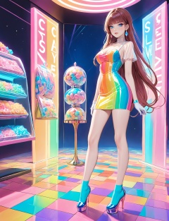 masterpiece,bestquality,(candy lady),(two candy ladies),slender legs,elegant full body posture,colorful top,colorful dress,colorful socks,sci-fi crystal background,candy long boots,<lora:20240730-1722271406618:0.6>,<lora:detailer-xl:1>,crystal world,standing,