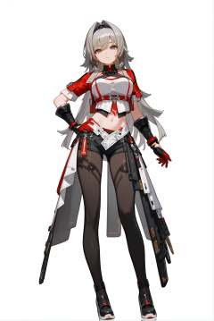 score_9, score_8_up, score_7_up, score_6_up, 8k, 8k, best quality, masterpiece, (ultra-detailed:1.1), (high detailed skin), (full body), ( white background,simple background:1.3), standing, looking at viewer, (solo), hand on hip, <lora:Helia-pony-Tanger:0.8>, Helia, def clothes, 1girl, gloves, long hair, grey hair, navel, pantyhose, shorts, breasts, (beautiful_face), clear face, full_shot,