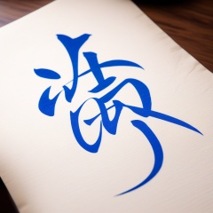 A blue handwritten line reading "HunYuan", on a luxurious paper background, the handwriting is elegant and beautiful.