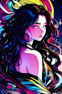 vspop, A masterpiece of intricate detail and vibrant color, a stunning anime-inspired artwork captures the essence of a captivating solo female subject. Gazing directly into the viewer's eyes with an air of confidence and mystery, her gaze is framed by luscious locks of hair cascading down her shoulders. Her torso, partially exposed, showcases a mesmerizing blend of traditional and digital artistry, as intricate patterns dance across her skin. The soft glow of ambient lighting accentuates the subtle curves of her body, while the overall composition exudes an aura of mystique and allure.
