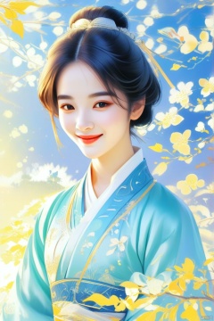 1girl,hanfu,chinese costume,short hair ,smile,upper body,delicate facial features,(best quality),((masterpiece)),(an extremely delicate and beautiful),original,extremely detailed wallpaper,gufeng-style