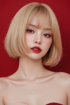 ((masterpiece, best quality, absurdities, (absurdresolution), high resolution, ultra detailed, highest resolution, very fine 8KCG wallpapers)), shaded, crimson, wet lips, sensual face, realistic retinas, straight hair, Bob cut , blonde,Asian Best Face Ever, hdr