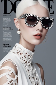 Geometric art style fashion magazine cover,exudes a sense of death,a smoking woman,standing in front of the fashion magazine's cover text for a photo *****,white cover text,decorated with gorgeous patterns and beautiful lines,slim wait,deconstructed minimalist line drawings. Fractal art effect. Dolce and Gabbana and Balenciaga Haute couture,(sunglasses),